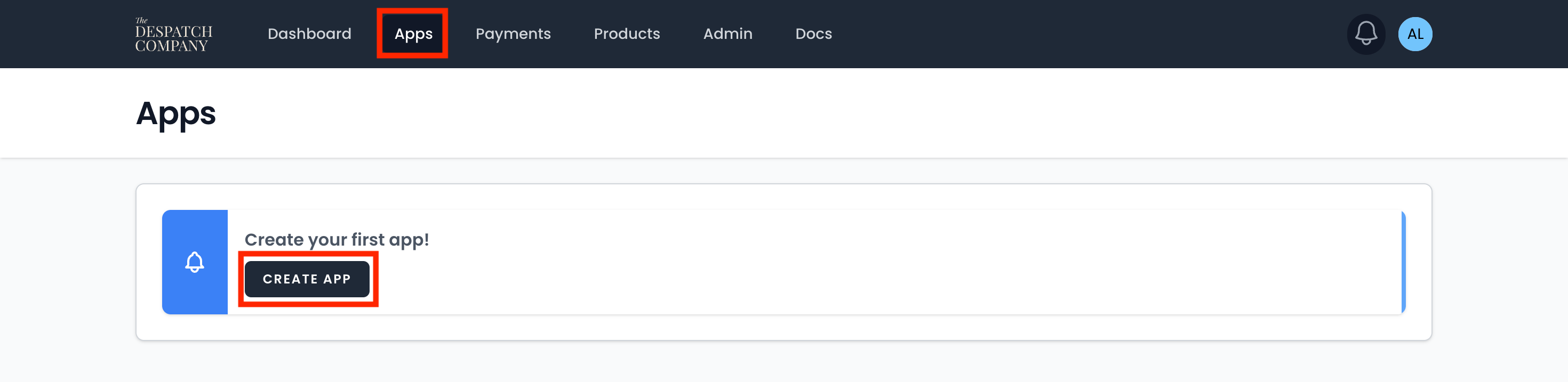 Navigate to the “Apps” section and select “Create a new App”.