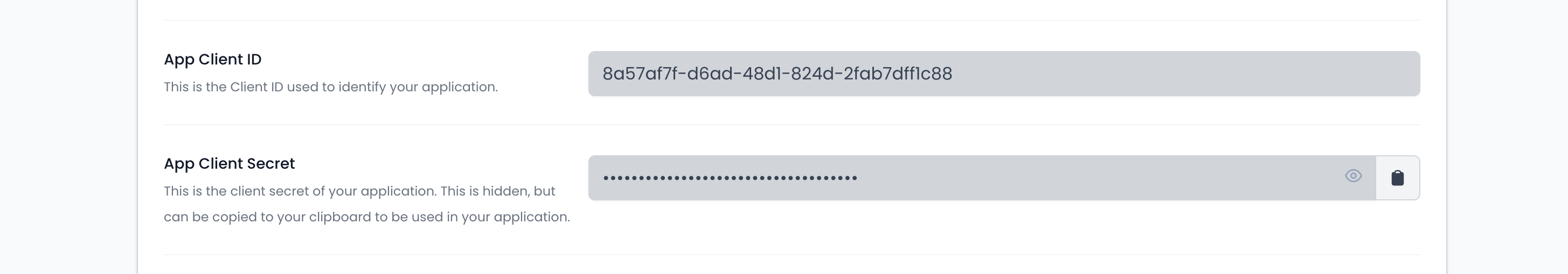 After saving, your app will be assigned a Client ID and Client Secret.